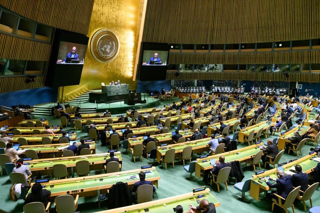 The UN General Assembly holds a plenary session at the UN headquarters in New York on Jan. 20, 2022. UN General Assembly President Abdulla Shahid on Thursday made a solemn appeal for commitment to the Olympic Truce during the 2022 Winter Olympic and Paralympic Games to be held in Beijing, capital of China. (Loey Felipe/UN Photo/Handout via Xinhua)