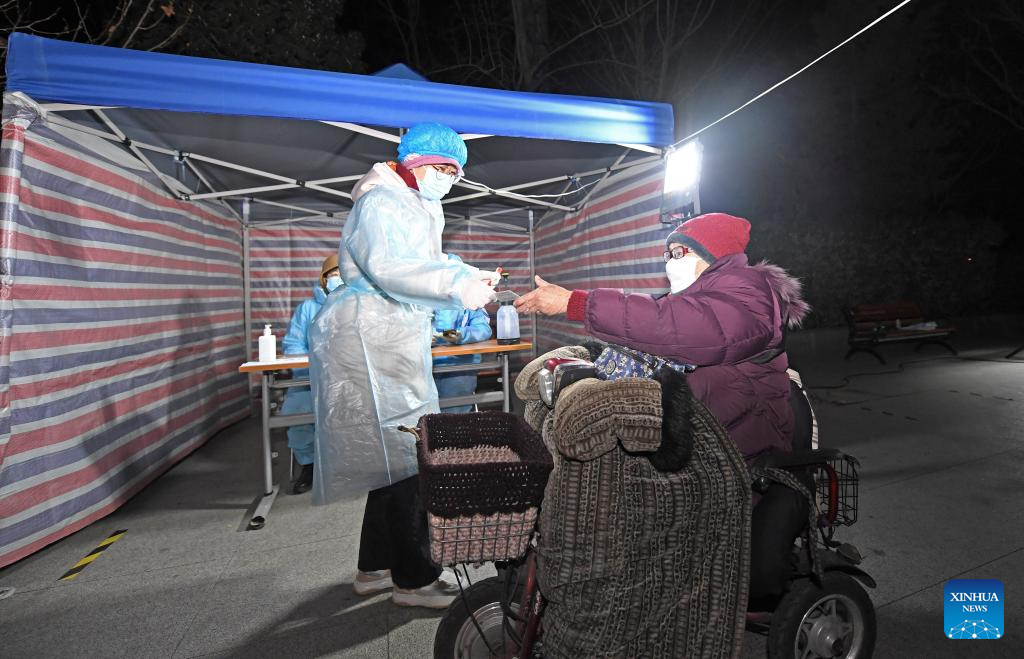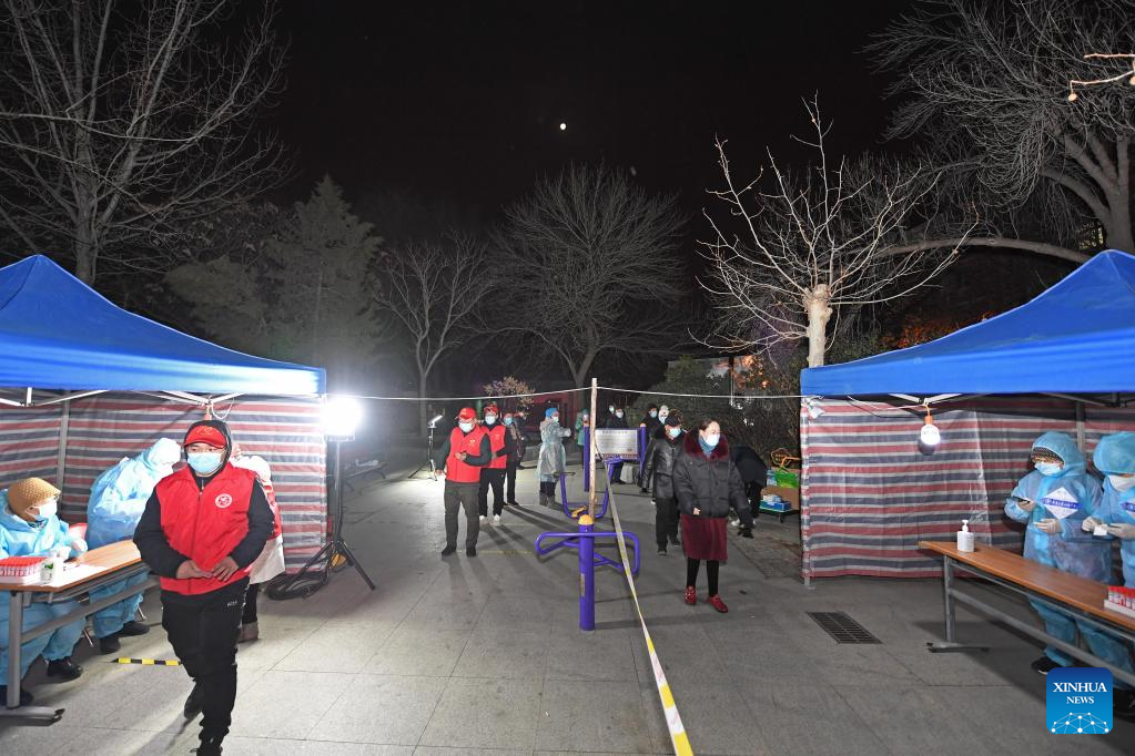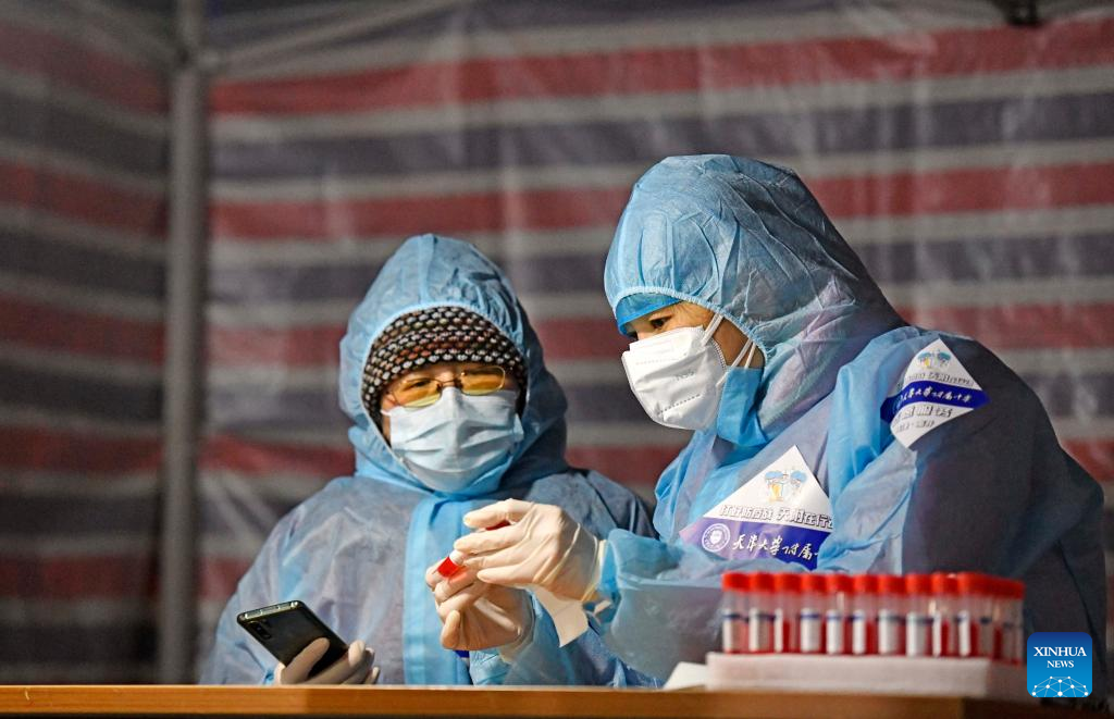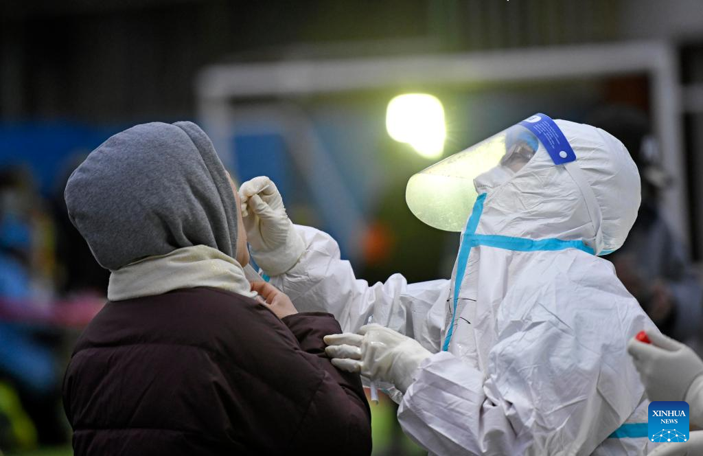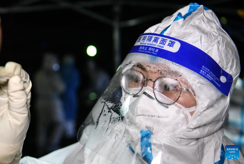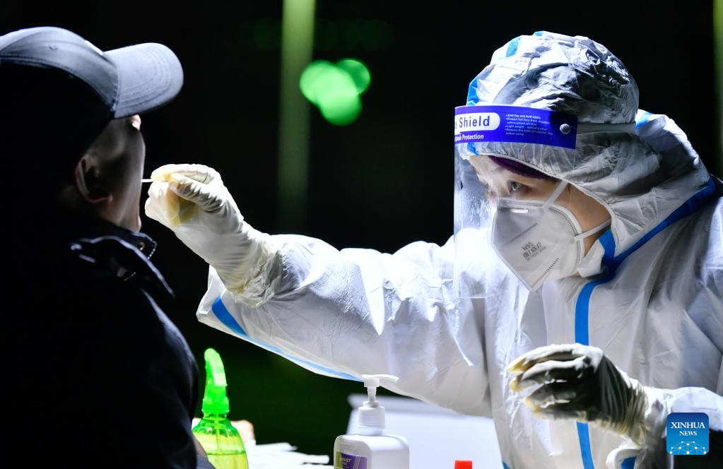 The city launched its fourth citywide nucleic acid testing at 6 a.m. Thursday, aiming to curb the further spread of the virus. (Xinhua/Sun Fanyue)