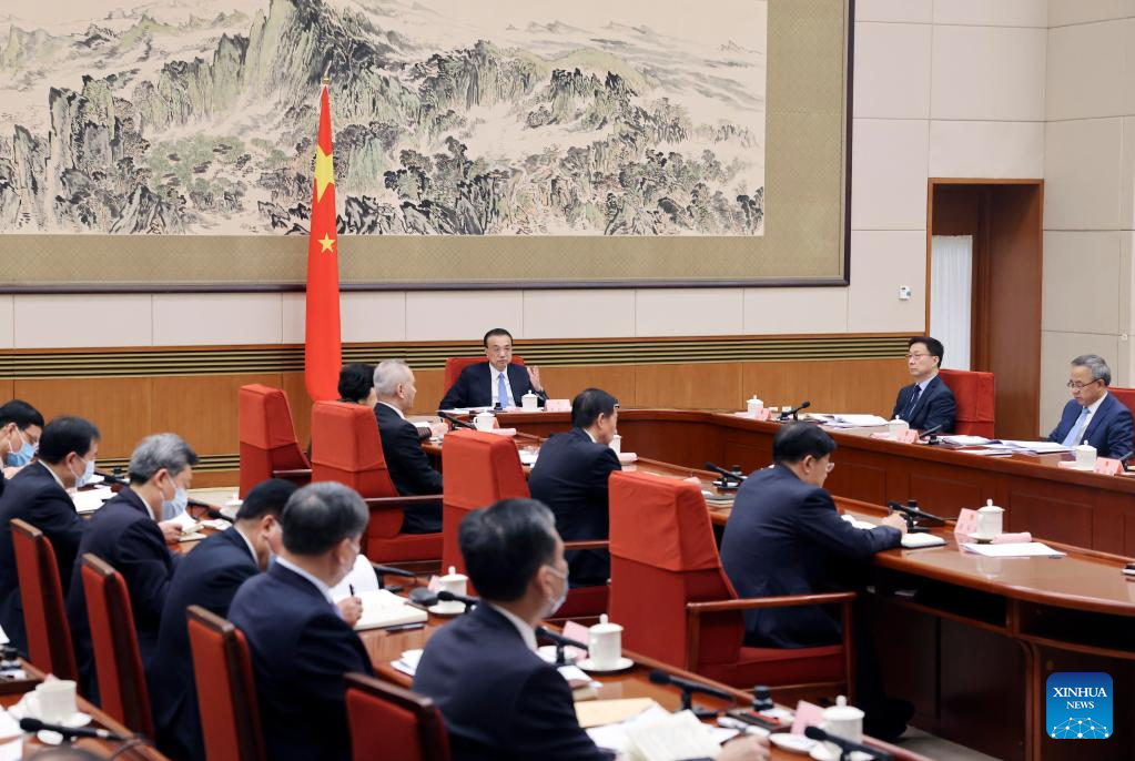 Chinese Premier Li Keqiang presides over a plenary meeting of the State Council in Beijing, capital of China, Jan. 19, 2022. Vice Premier Han Zheng attended the meeting. (Xinhua/Liu Weibing)