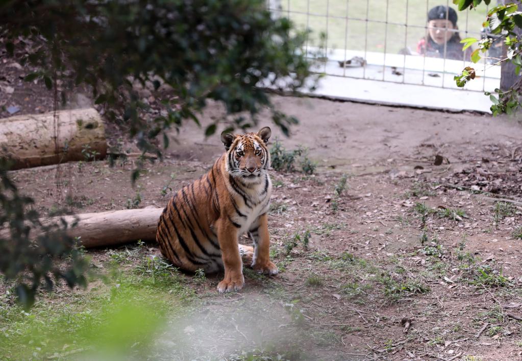 South China tiger Yuanyuan born in March 2021 is seen at the research base of south China tiger breeding in Shaoguan City of south China's Guangdong Province, Jan. 20, 2022. Mengmeng, a south China tiger, gave birth to twin cubs on Dec. 31, 2021 after its two cubs Yuanyuan and Qingqing were born in March and September 2021. (Xinhua/Huang Guobao)