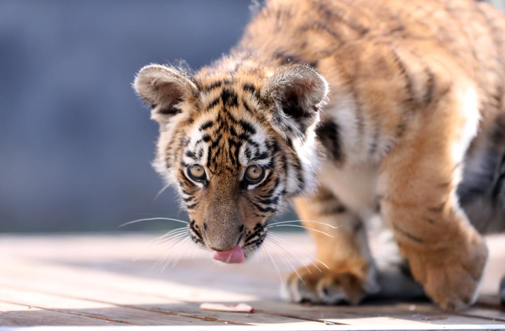 South China tiger Qingqing born in September 2021 is seen at the research base of south China tiger breeding in Shaoguan City of south China's Guangdong Province, Jan. 20, 2022. Mengmeng, a south China tiger, gave birth to twin cubs on Dec. 31, 2021 after its two cubs Yuanyuan and Qingqing were born in March and September 2021. (Xinhua/Huang Guobao)
