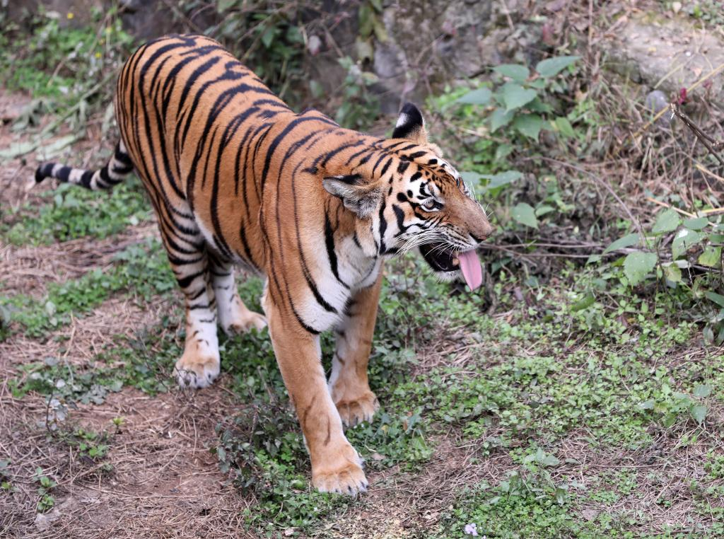 South China tiger Mengmeng, which gave birth to four cubs in 2021, is seen at the research base of south China tiger breeding in Shaoguan City of south China's Guangdong Province, Jan. 20, 2022. Mengmeng, a south China tiger, gave birth to twin cubs on Dec. 31, 2021 after its two cubs Yuanyuan and Qingqing were born in March and September 2021. (Xinhua/Huang Guobao)