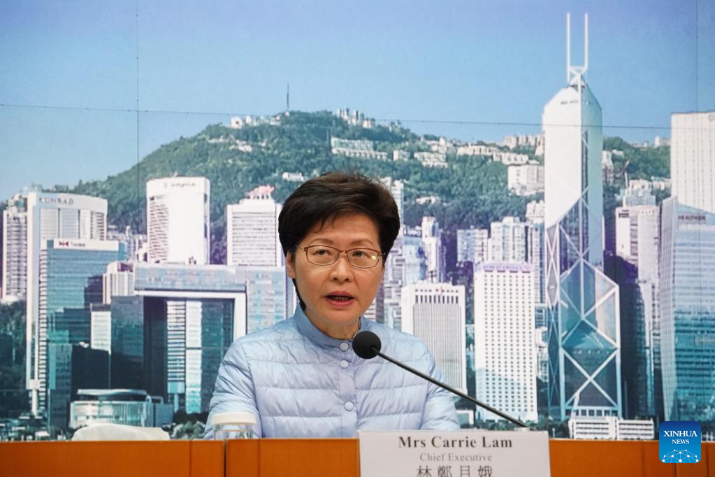 Chief Executive of China's Hong Kong Special Administrative Region Carrie Lam attends a press conference in Hong Kong, south China, Jan. 22, 2022. (Xinhua/Lui Siu Wai)
