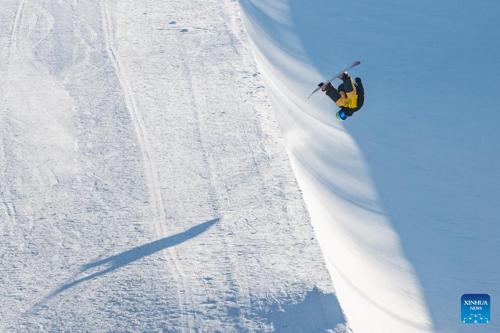 A skier from Heilongjiang Province participates in a training session at Yabuli Ski Resort in Harbin, northeast China's Heilongjiang Province, Jan. 21, 2022. Yabuli, located in northeastern China, is the cradle of Chinese winter sports. Boasting a professional ski area, Yabuli Resort hosted many national, continental and international winter games like FIS snowboard world cup, World Winter Universiade and the Asian Winter Games. (Xinhua/Xie Jianfei)