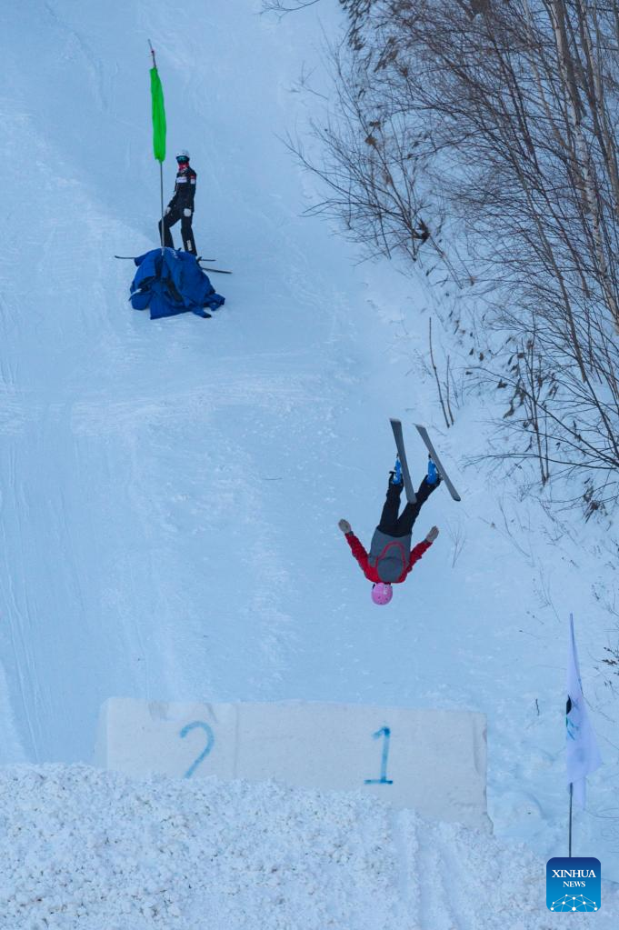 A skier from Heilongjiang Province participates in a training session at Yabuli Ski Resort in Harbin, northeast China's Heilongjiang Province, Jan. 21, 2022. Yabuli, located in northeastern China, is the cradle of Chinese winter sports. Boasting of professional ski area, Yabuli Resort hosted many national, continental and international winter games like FIS snowboard world cup, World Winter Universiade and the Asian Winter Games. (Xinhua/Xie Jianfei)