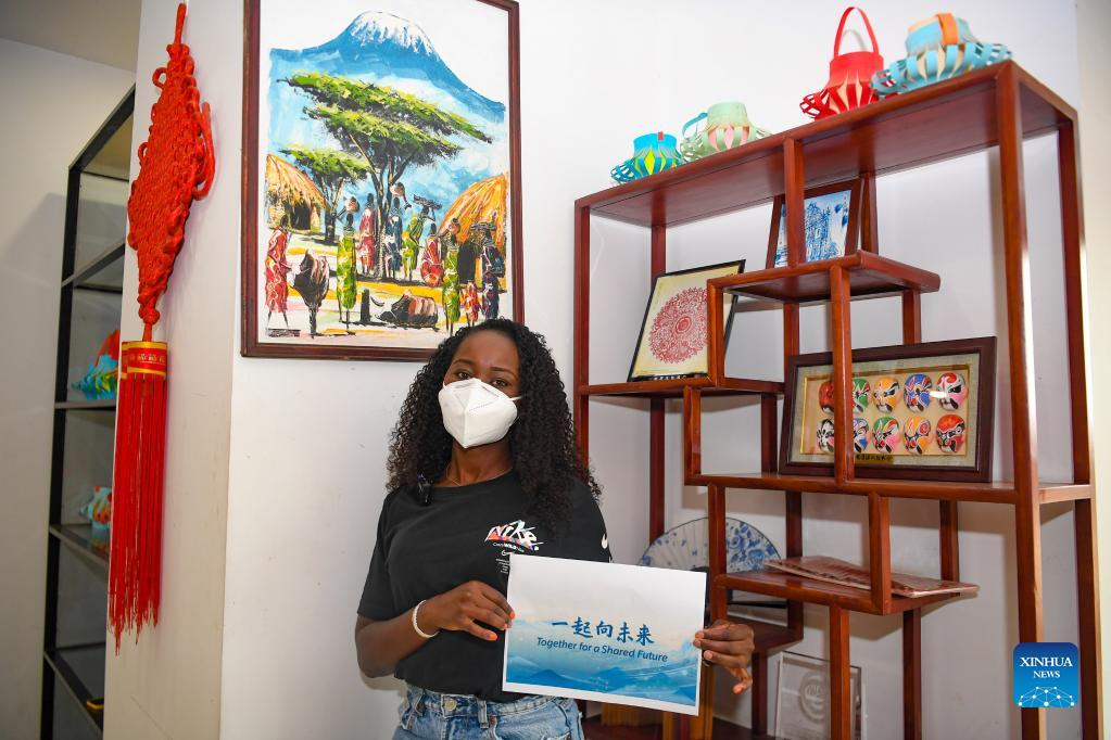 Nancy Kiptoo from Kenya poses with a piece of paper printing "Together for a Shared Future", the official motto for Beijing 2022, in Nairobi, Kenya, on Jan. 17, 2022. With less than two weeks to go before the start of the 2022 Winter Olympics in Beijing, people around the world are eagerly expressing their joy over the sporting extravaganza. (Xinhua/Li Yan)