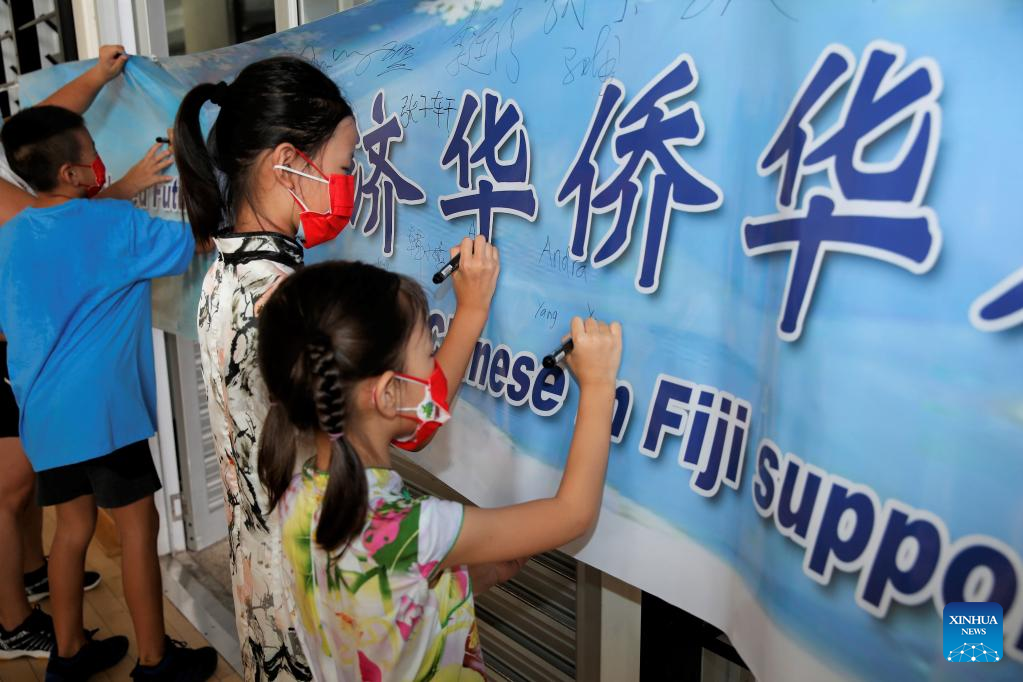 Regardless of age, they were all very happy to sign their names on the banner, which says that overseas Chinese in Fiji support the Beijing 2022 Winter Olympic Games.