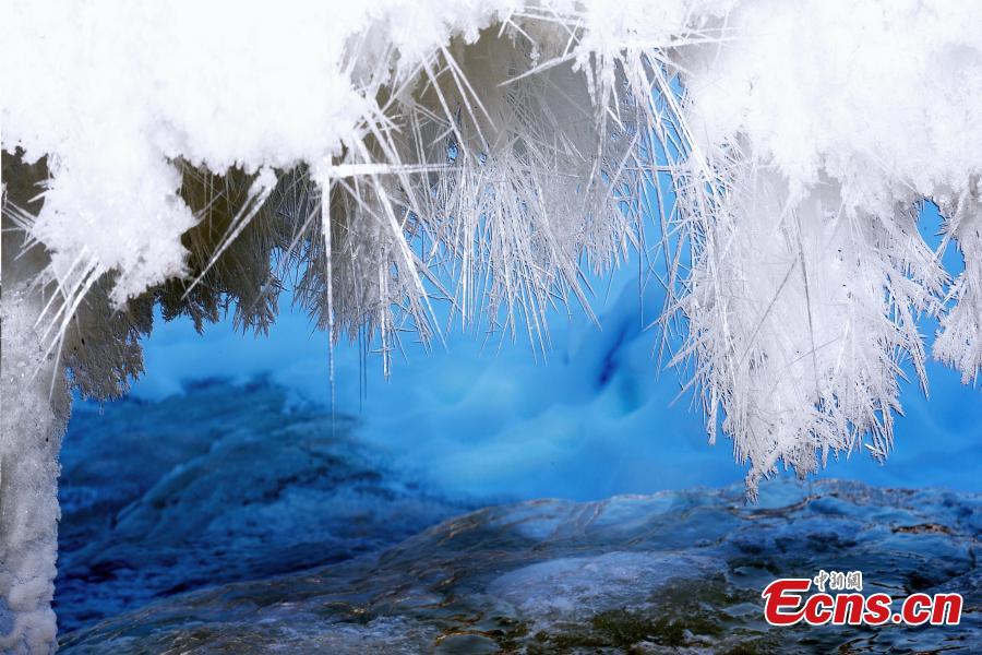 Frost hangs on the cave walls, creating a fairy tale atmosphere in Ali River National Forest Park, north China's Inner Mongolia Autonomous Region. (Photo: China News Service/Luan Weijing)