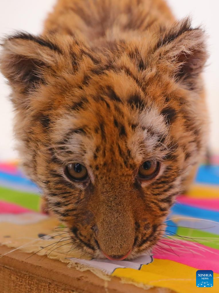 A tiger cub plays at Guaipo Siberian Tiger Park in Shenyang, northeast China's Liaoning Province, Jan. 24, 2022. The 2022 Chinese Lunar New Year falls on Feb. 1. It is based on a 12-year Zodiac cycle of characters, with 2022 being the Year of the Tiger. (Xinhua/Yang Qing)