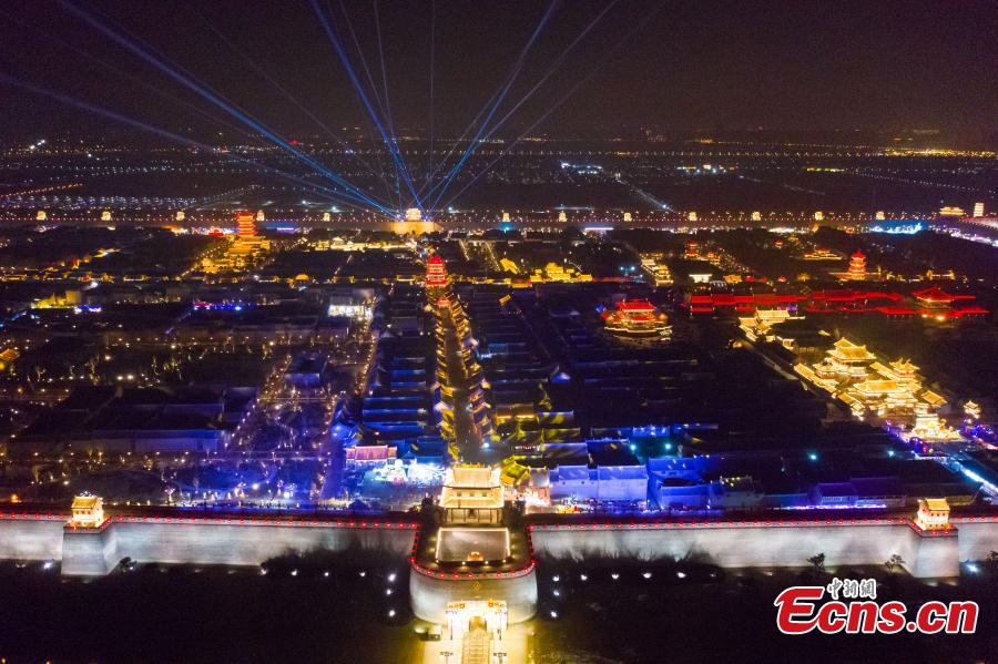 Photo taken on Jan. 25, 2022 shows the night view of the ancient county of Taiyuan in Taiyuan City, capital of north China's Shanxi Province. (Photo: China News Service/Wu Junjie)