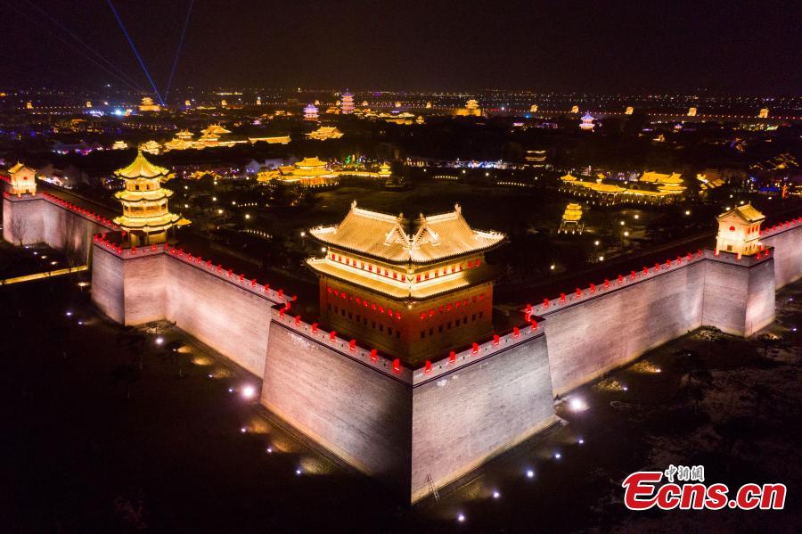 Photo taken on Jan. 25, 2022 shows the night view of the ancient county of Taiyuan in Taiyuan City, capital of north China's Shanxi Province. (Photo: China News Service/Wu Junjie)