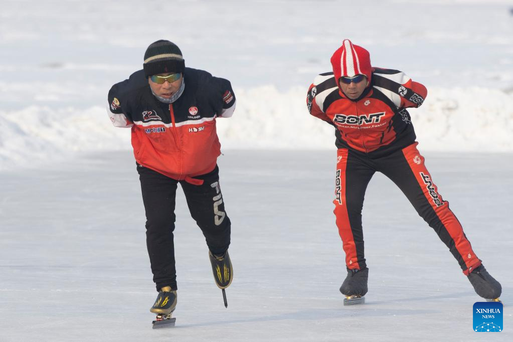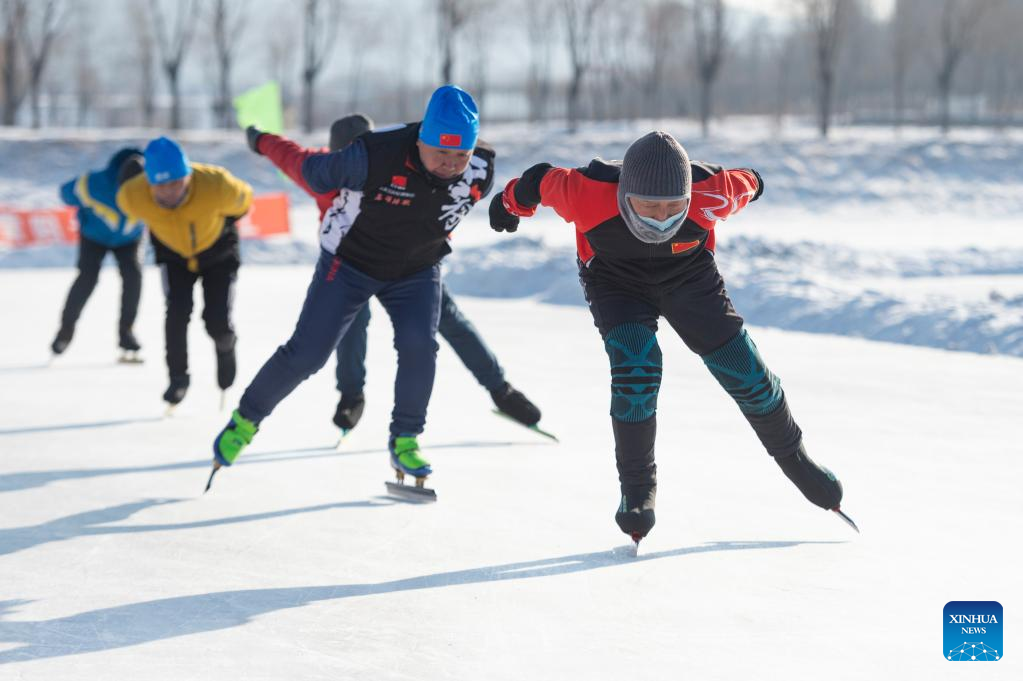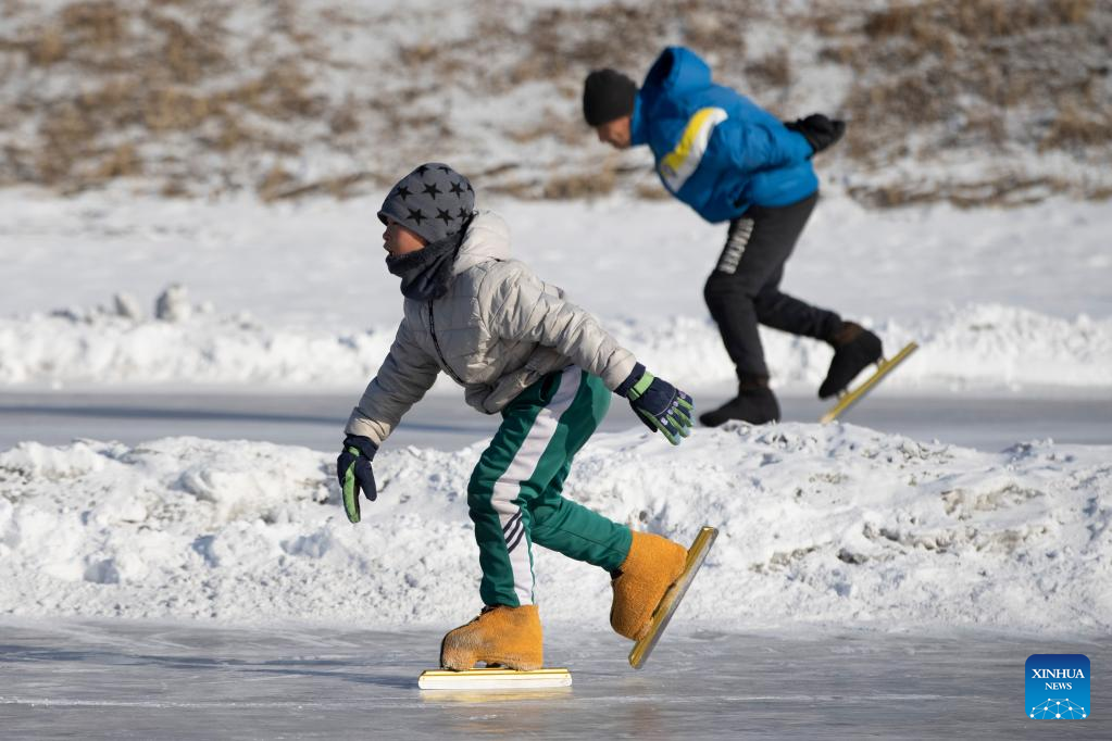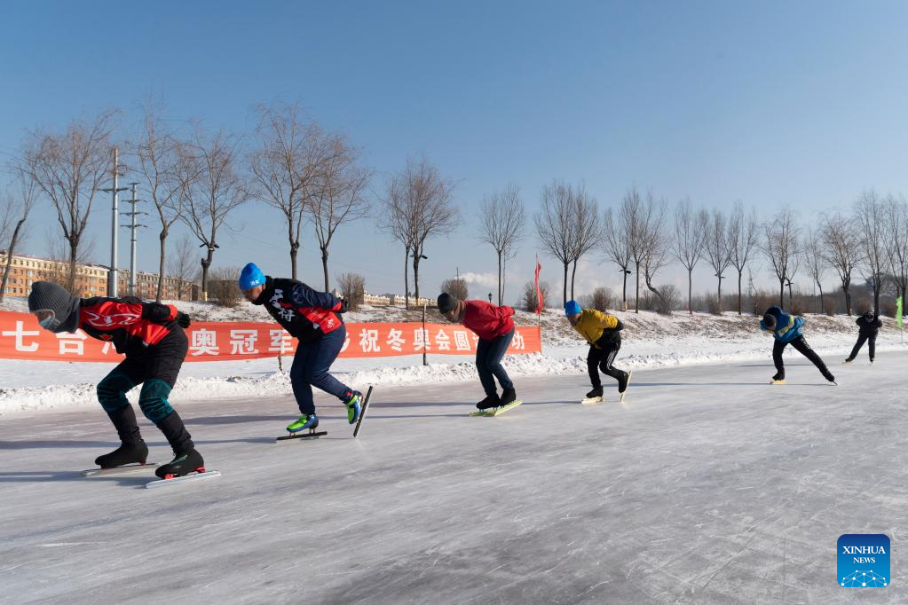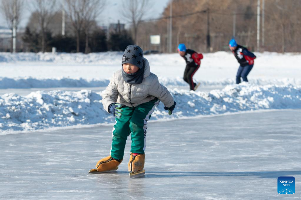 People skate on an ice rink in Qitaihe, northeast China's Heilongjiang Province, Jan. 12, 2022. The upcoming Beijing 2022 Winter Olympic Games created an intense Olympic atmosphere in Heilongjiang, a major province of winter sports in China. (Xinhua/Zhang Tao)