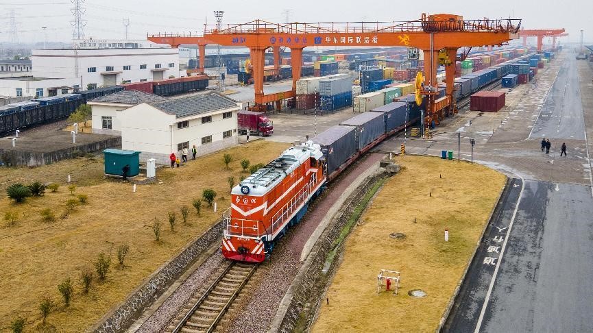 Jinhua, east China’s Zhejiang province sees the departure of its first cargo train of the China-Laos Railway in the new year, Jan. 16, 2022. (People’s Daily Online/ Hu Xiaofei)
