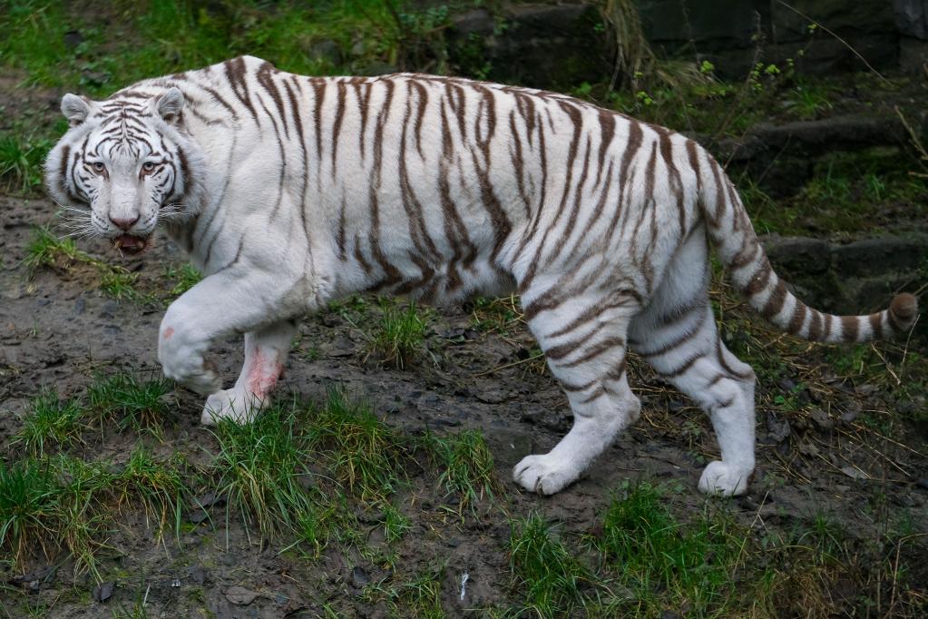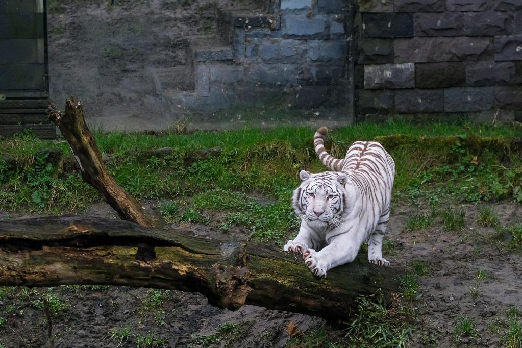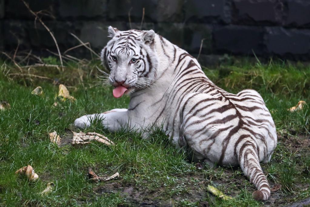 Photo taken on Jan. 26, 2022 shows a white Bengal tiger at the Pairi Daiza zoo in Brugelette, Belgium. The upcoming Chinese Lunar New Year, the Year of the Tiger, falls on Feb. 1 this year. (Xinhua/Zhang Cheng)