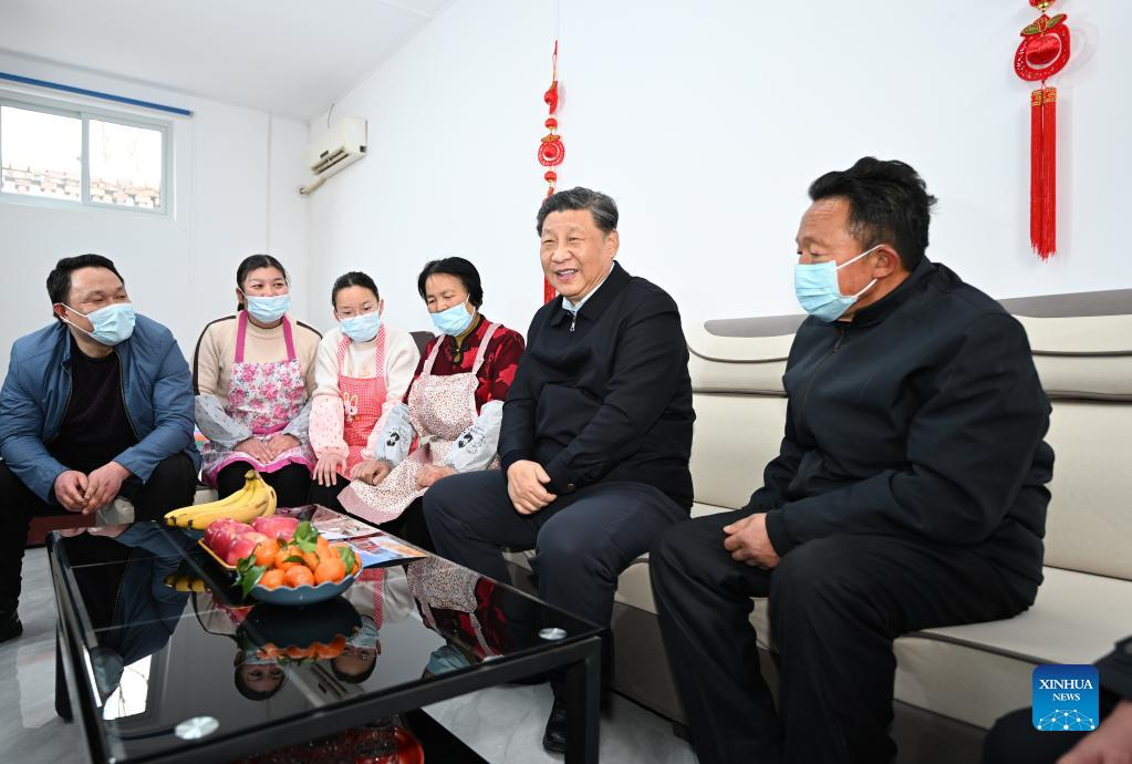 Chinese President Xi Jinping, also general secretary of the Communist Party of China (CPC) Central Committee and chairman of the Central Military Commission, visits a villager's home in Fengnanyuan Village, Shizhuang Township of Huozhou City, north China's Shanxi Province, Jan. 26, 2022. Xi on Wednesday began his visit to Shanxi Province ahead of the Spring Festival, or the Chinese New Year. (Xinhua/Li Xueren)