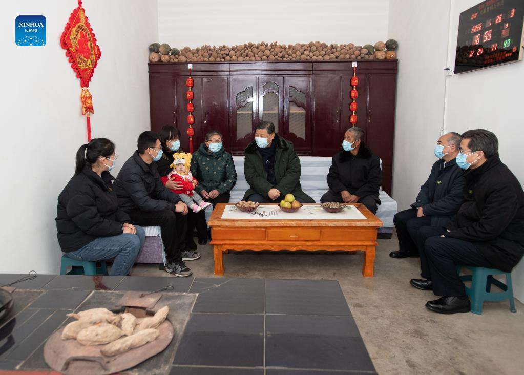 Chinese President Xi Jinping, also general secretary of the Communist Party of China (CPC) Central Committee and chairman of the Central Military Commission, visits a villager's home in Duancun Village, Sengnian Township of Fenxi County, north China's Shanxi Province, Jan. 26, 2022. Xi on Wednesday began his visit to Shanxi Province ahead of the Spring Festival, or the Chinese New Year. (Xinhua/Li Xueren)