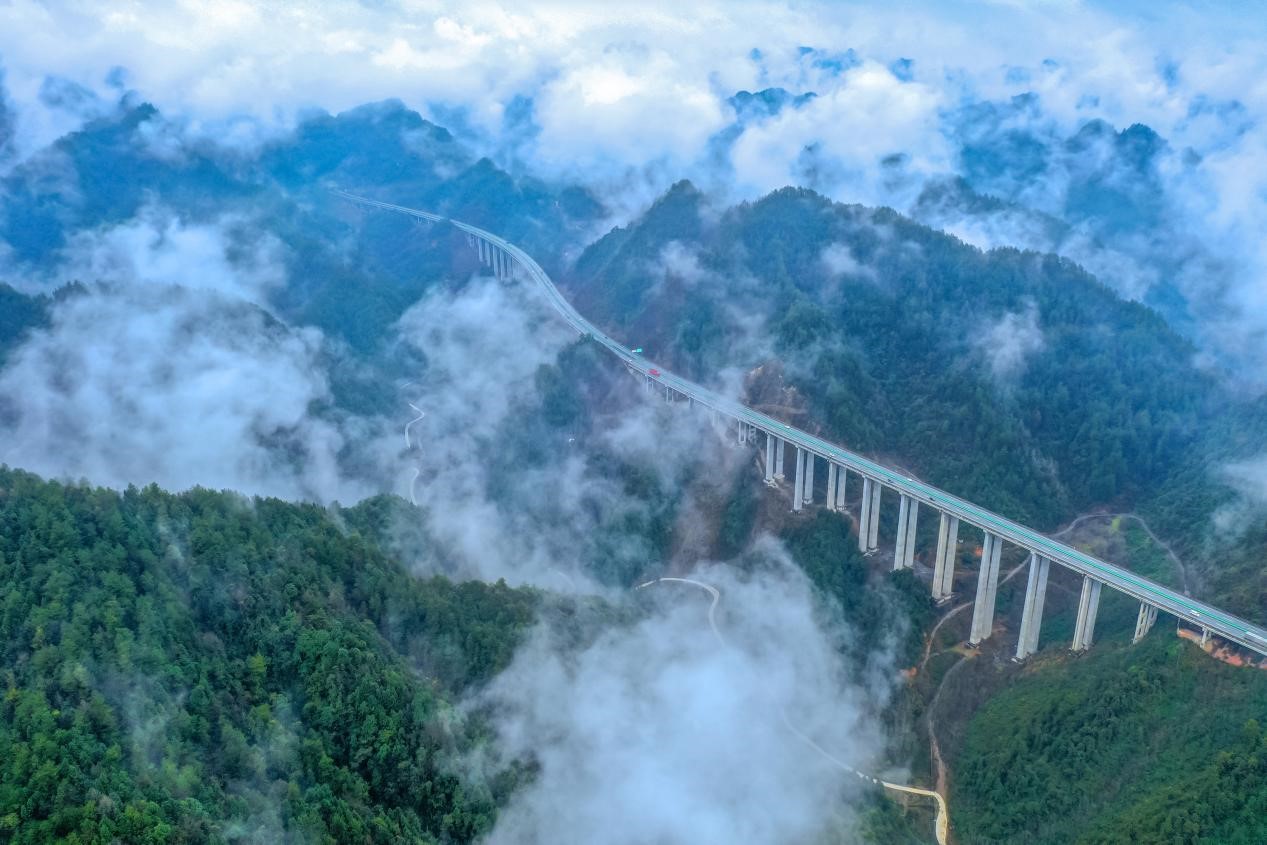 Photo taken on Jan. 8, 2022 shows an expressway built in the mountains near Touche village, Longshan county, Xiangxi Tujia and Miao autonomous prefecture, central China’s Hunan province. (People’s Daily Online/ Zeng Xianghui)