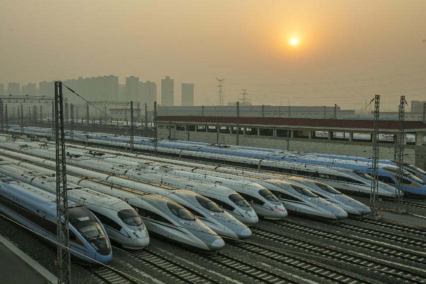 Bullet trains in Xi’an, northwest China’s Shaanxi province, Jan. 17, 2022. (People’s Daily Online/ Wang Shutian)