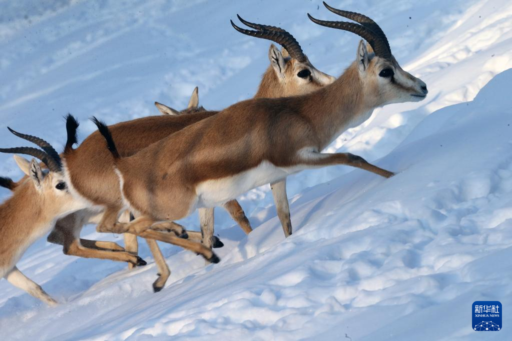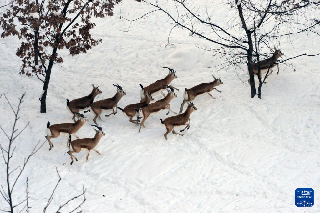 Gazelles gallop at Altinkoy natural park in Ankara, Turkey, Jan. 27, 2022. (Photo by Mustafa Kaya/Xinhua)