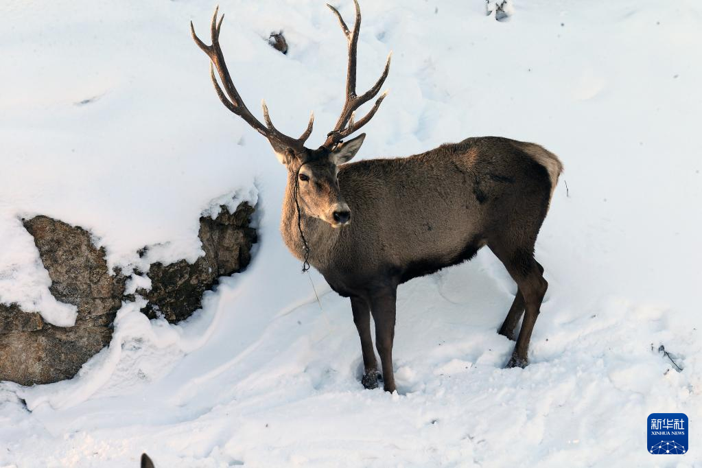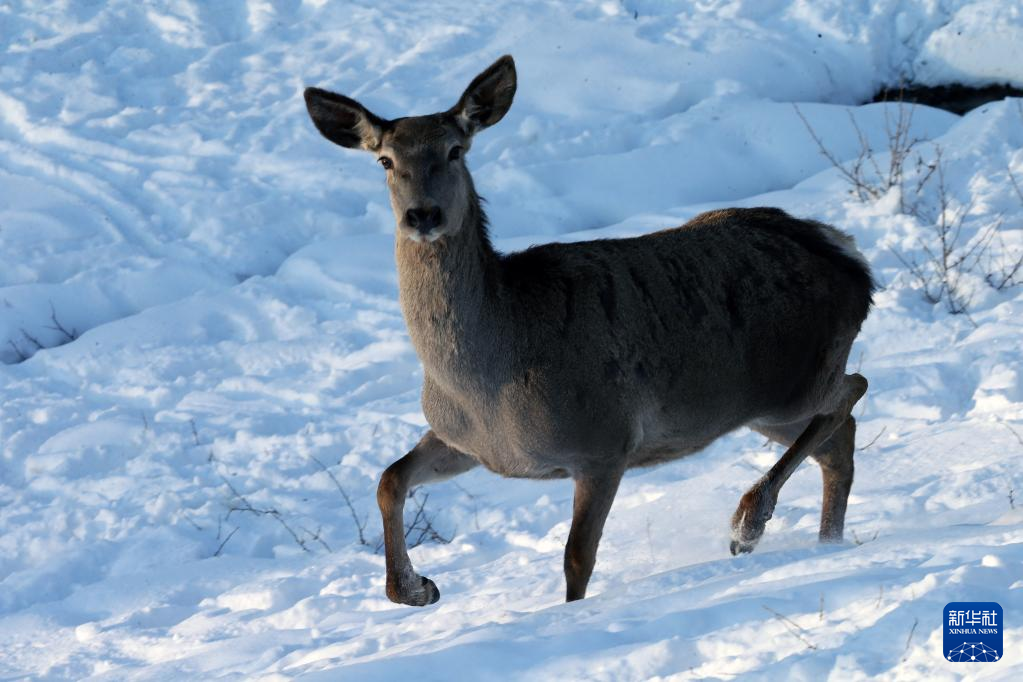 A red deer is seen at Altinkoy natural park in Ankara, Turkey, Jan. 27, 2022. (Photo by Mustafa Kaya/Xinhua)