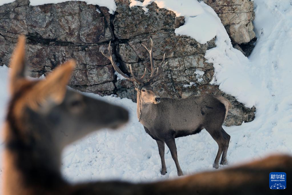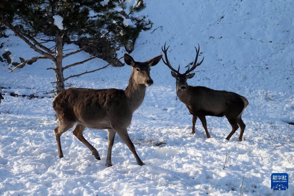 Red deer are seen at Altinkoy natural park in Ankara, Turkey, Jan. 27, 2022. (Photo by Mustafa Kaya/Xinhua)