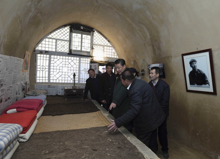 Xi met with old acquaintances from Liangjiahe Village, Shaanxi Province, where he had spent seven years as an adolescent and young adult. "I will never forget the villagers here and the people in the old revolutionary base," Xi said.