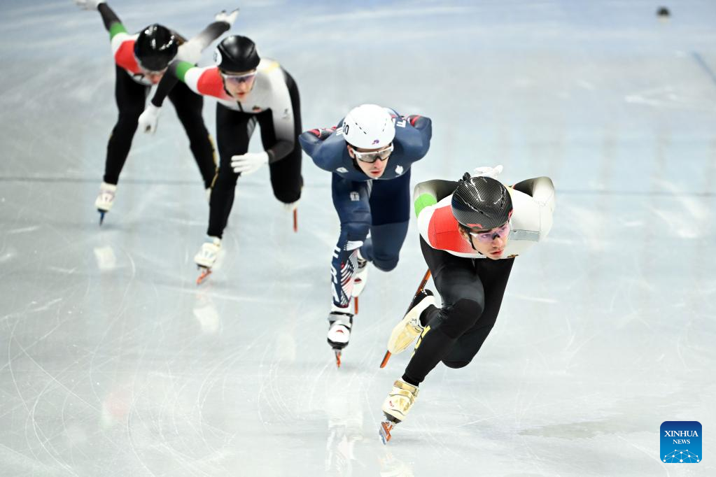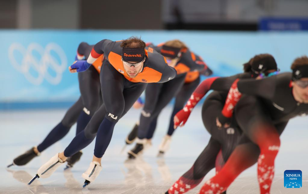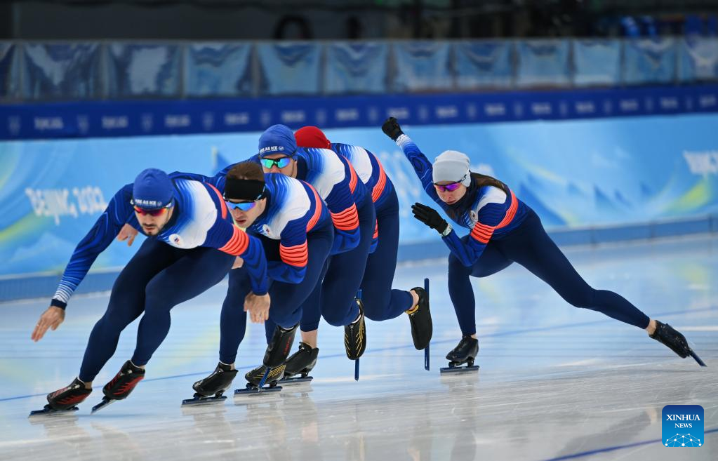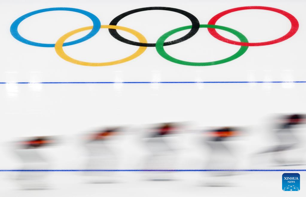 Athletes take part in a training session at the National Speed Skating Oval in Beijing, capital of China, Jan. 28, 2022. (Xinhua/Wang Jianwei)