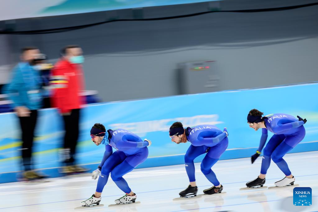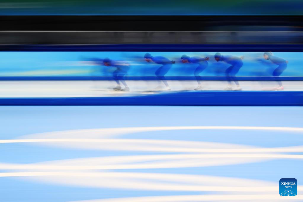Athletes take part in a training session at the National Speed Skating Oval in Beijing, capital of China, Jan. 28, 2022. (Xinhua/Wu Wei)