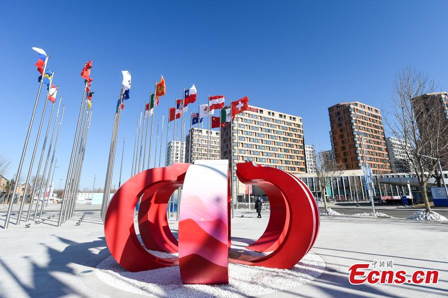 Flags fly at the square of the Olympic Village for the Beijing 2022 Olympic Winter Games in Beijing, capital of China, Jan. 27, 2022. (Photo: China News Service/He Penglei)