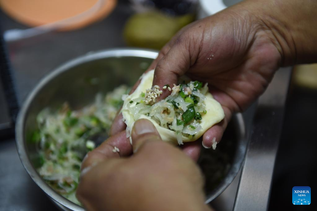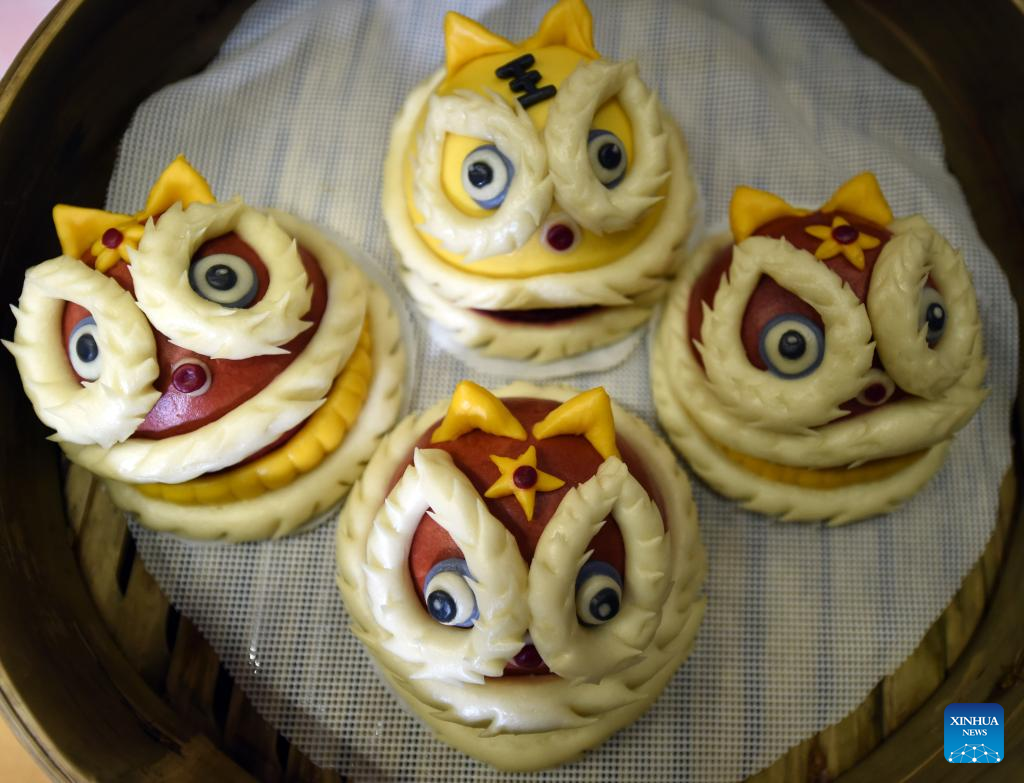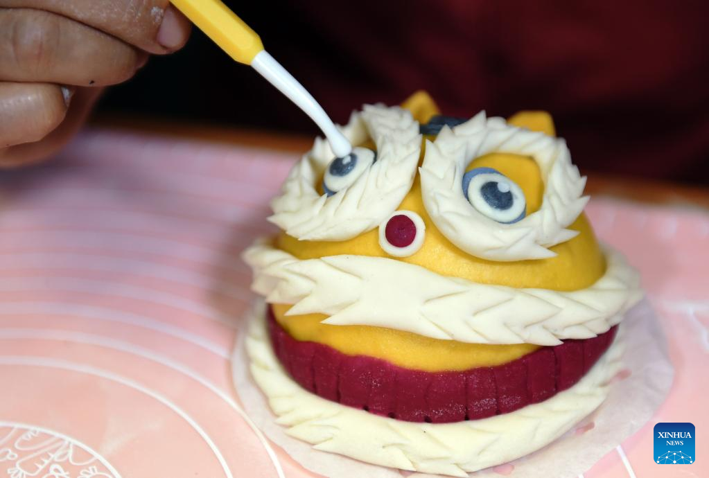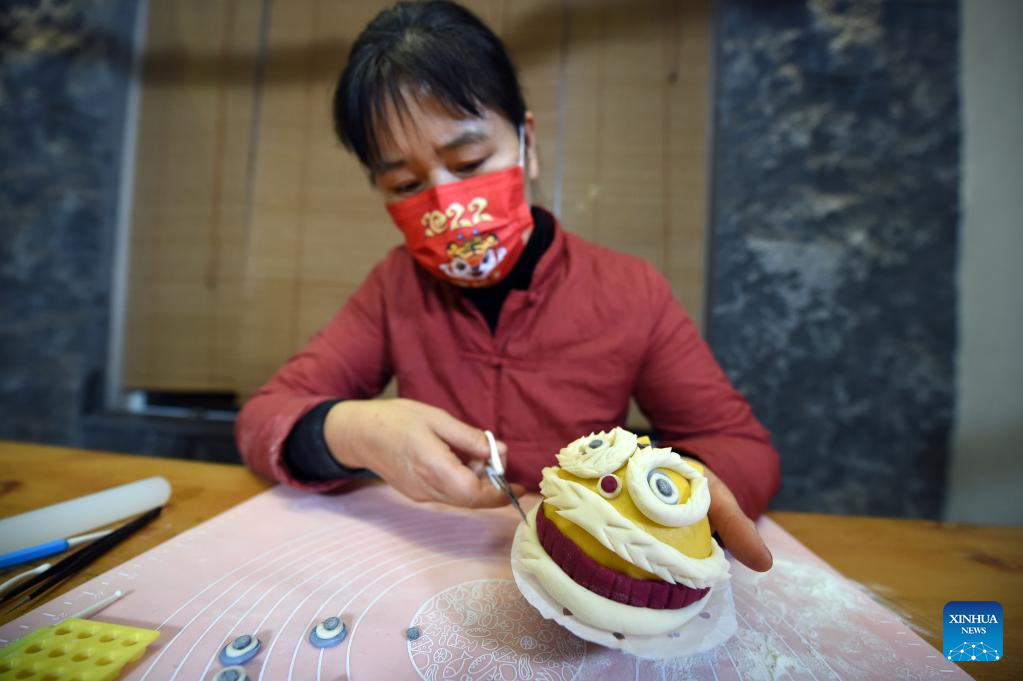 A resident makes steamed buns in the form of a tiger's head in Huizhou District of Huangshan, east China's Anhui Province, Jan. 19, 2022. Southern Anhui has a rich culture that preserves many traditional folk customs. As the lunar new year approaches, locals write Spring Festival couplets and prepare various delicious delicacies to share the festive mood. (Xinhua/Zhou Mu)