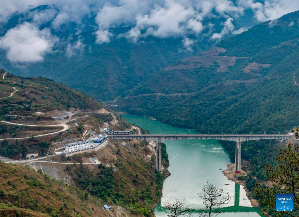 Photo taken on Jan. 28, 2022 shows Xiaowandong railway station on the banks of the Lancang River in Xiaowandong Township of Nanjian Yi Autonomous County, southwest China's Yunnan Province.