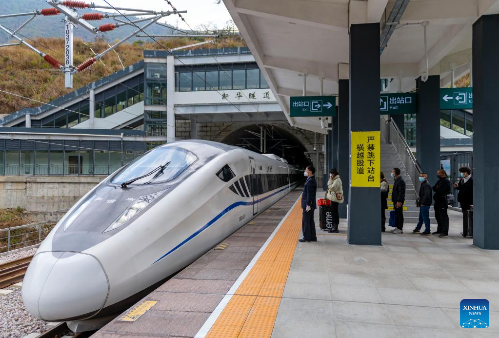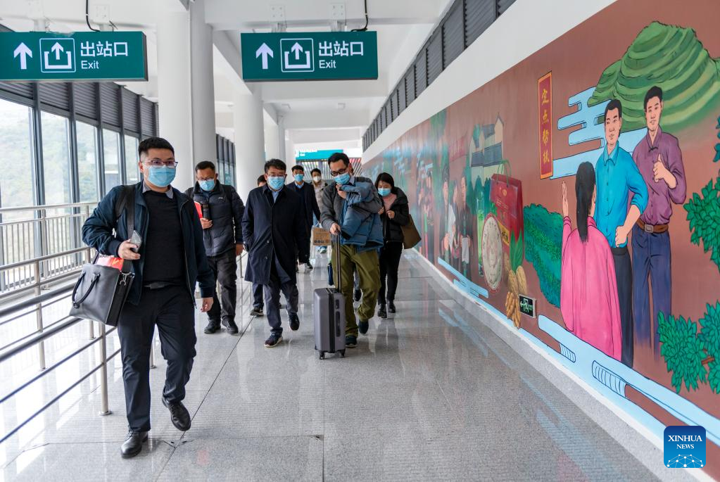 The railway station was put into operation last November. In 2022, the station will serve passengers during the Spring Festival travel rush for the first time. (Xinhua/Chen Xinbo)