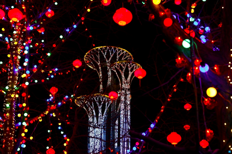 Photo taken on Jan. 29, 2022 shows a light show at the Beijing Olympic Tower in Beijing, capital of China. (Xinhua/Ding Xu)
