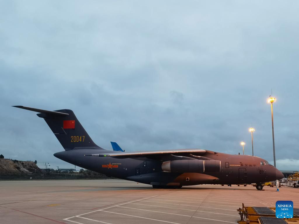Photo taken with a mobile phone shows Chinese military aircraft returning to the Guangzhou Baiyun International Airport in Guangzhou, south China's Guangdong Province, on Jan. 29, 2022, after delivering relief supplies to Tonga. (Xinhua/Ding Zengyi)