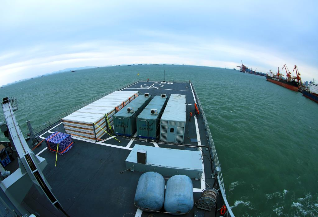 A ship loaded with relief supplies departs from a port in Guangzhou, south China's Guangdong Province, for Tonga, Jan. 31, 2022. (Photo by Zhou Yancheng/Xinhua)
