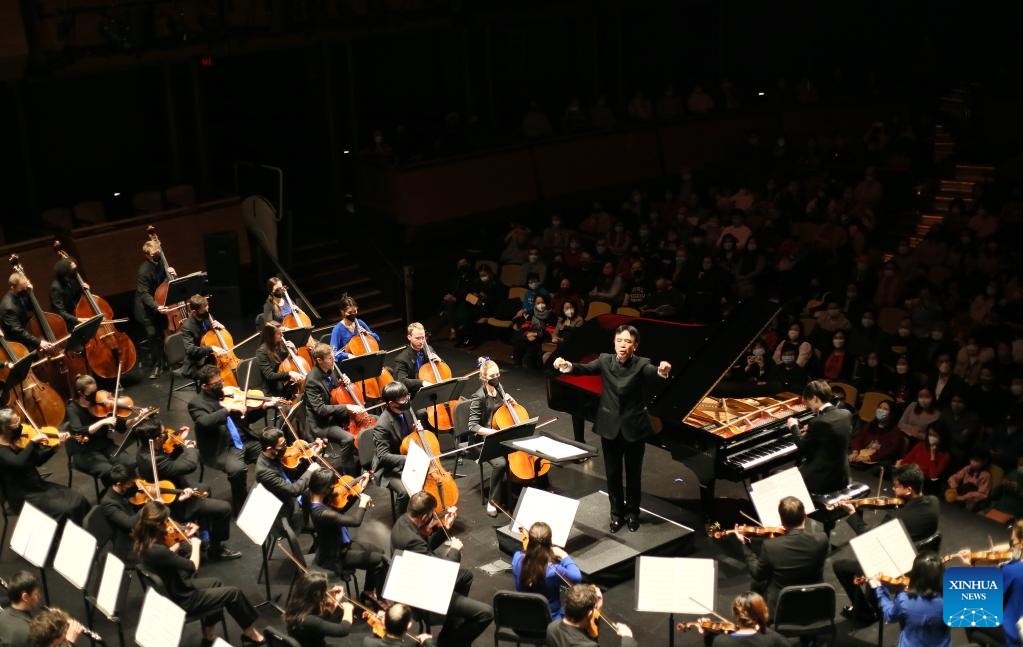 Artists present the Chinese New Year Concert "The Sound of Spring" in New York City, the United States, Jan. 30, 2022. Artists from the U.S.-China Music Institute of the Bard College Conservatory of Music Sunday presented its third Chinese New Year Concert "The Sound of Spring" in New York City with around 1,000 people in attendance. (Xinhua/Liu Yanan)