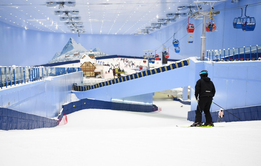 A man skis at an indoor ski resort in Guangzhou, south China's Guangdong Province, June 19, 2019. (Xinhua/Deng Hua)