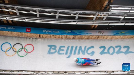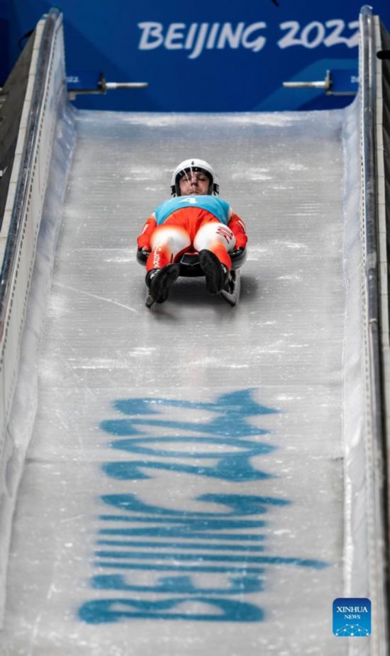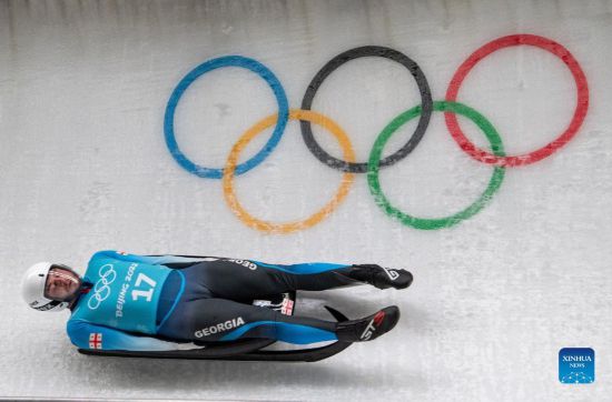 Georgia's Saba Kumaritashvili takes part in the men's singles luge training session at the National Sliding Centre in Beijing, capital of China, Feb. 2, 2022. (Xinhua/Sun Fei)