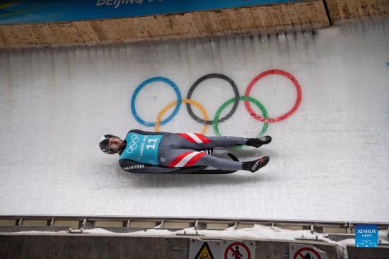 Austria's Nico Gleirscher takes part in the men's singles luge training session at the National Sliding Centre in Beijing, capital of China, Feb. 2, 2022. (Xinhua/Sun Fei)