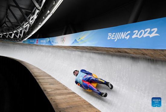 Romania's Valentin Cretu takes part in the men's singles luge training session at the National Sliding Centre in Beijing, capital of China, Feb. 2, 2022. (Xinhua/He Changshan)