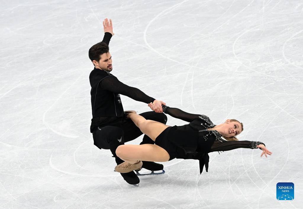 Madison Hubbell (R) /Zachary Donohue of the United States perform during the figure skating team event ice dance rhythm dance at Capital Indoor Stadium in Beijing, capital of China, Feb. 4, 2022. (Xinhua/Ma Ning)