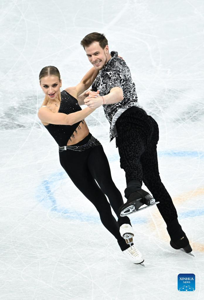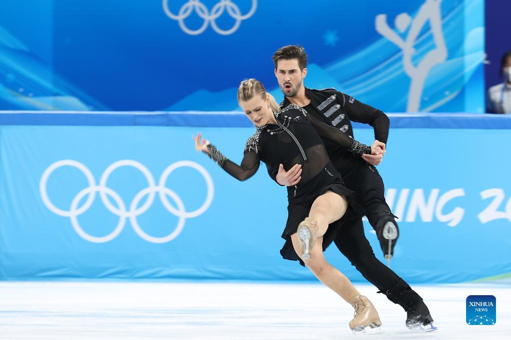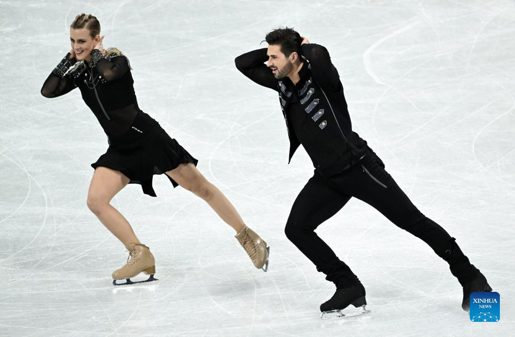 Charlene Guignard (R) /Marco Fabbri of Italy perform during the figure skating team event ice dance rhythm dance at Capital Indoor Stadium in Beijing, capital of China, Feb. 4, 2022. (Xinhua/Ma Ning)