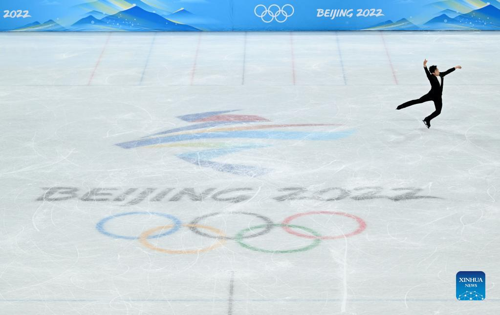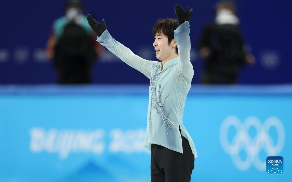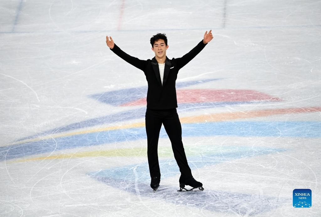 Nathan Chen of the United States competes during the figure skating team event men single skating short program at National Indoor Stadium in Beijing, capital of China, Feb. 4, 2022. (Xinhua/Ma Ning)