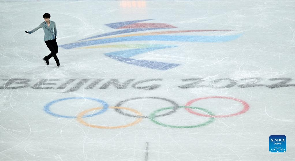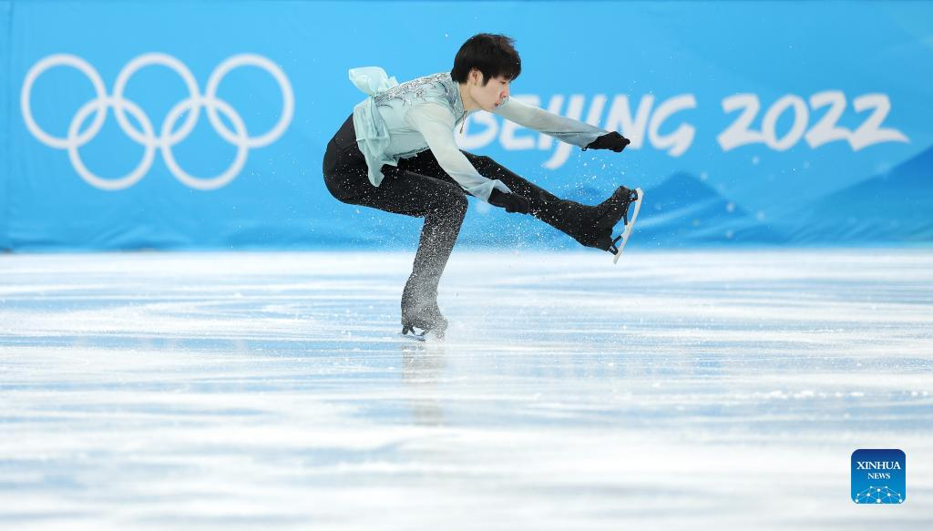 China's Jin Boyang competes during the figure skating team event men single skating short program at National Indoor Stadium in Beijing, capital of China, Feb. 4, 2022. (Xinhua/Ma Ning)