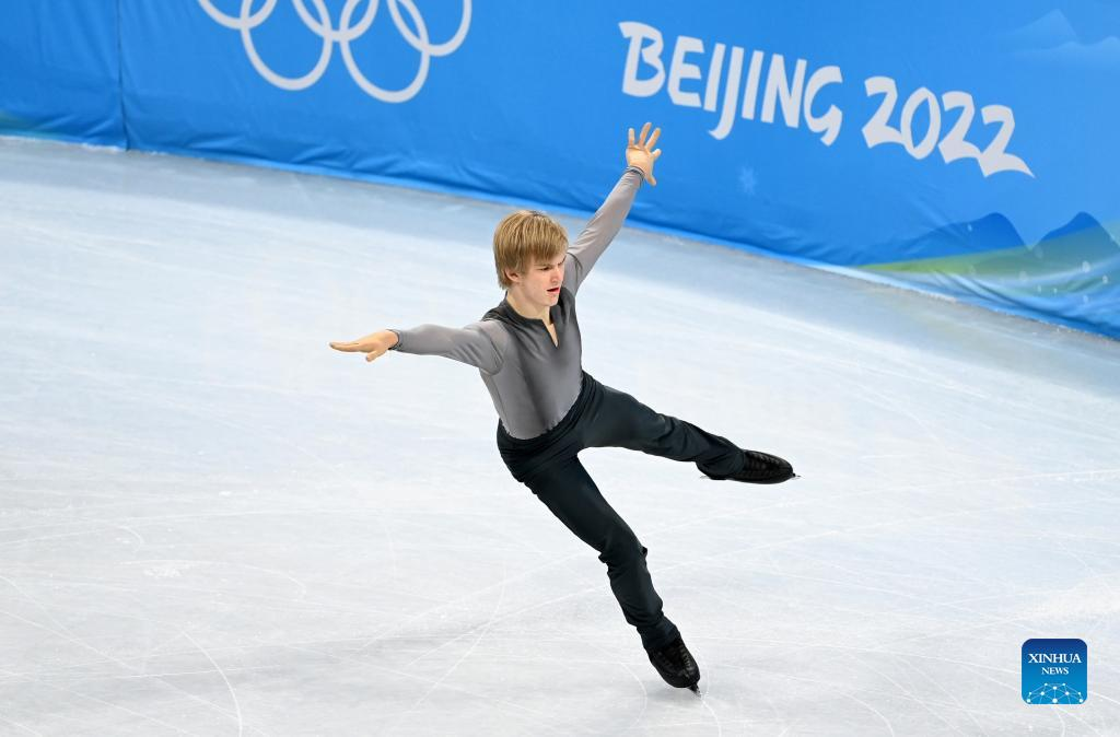 Daniel Grassl of Italy competes during the figure skating team event men single skating short program at Capital Indoor Stadium in Beijing, capital of China, Feb. 4, 2022. (Xinhua/Ma Ning)