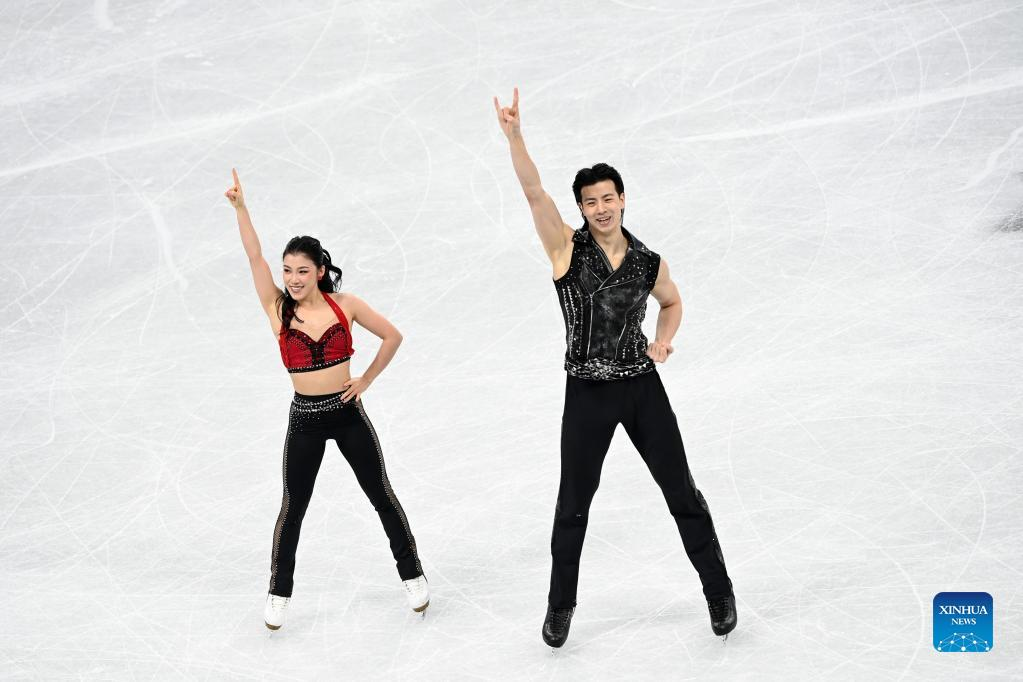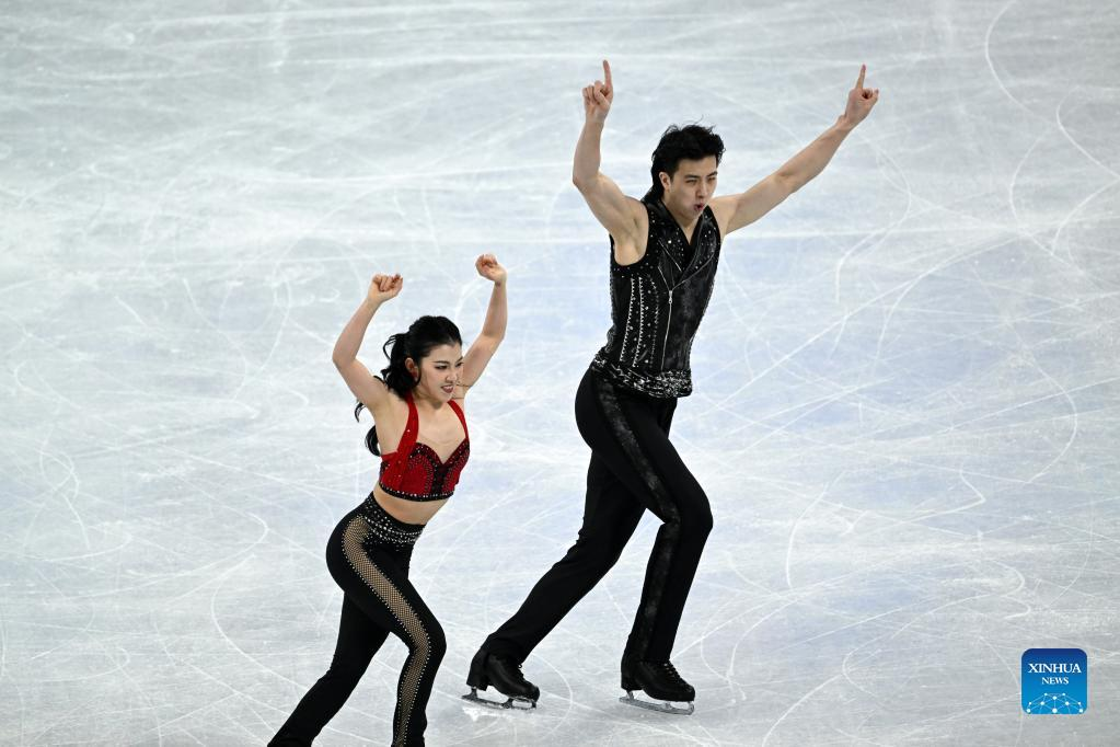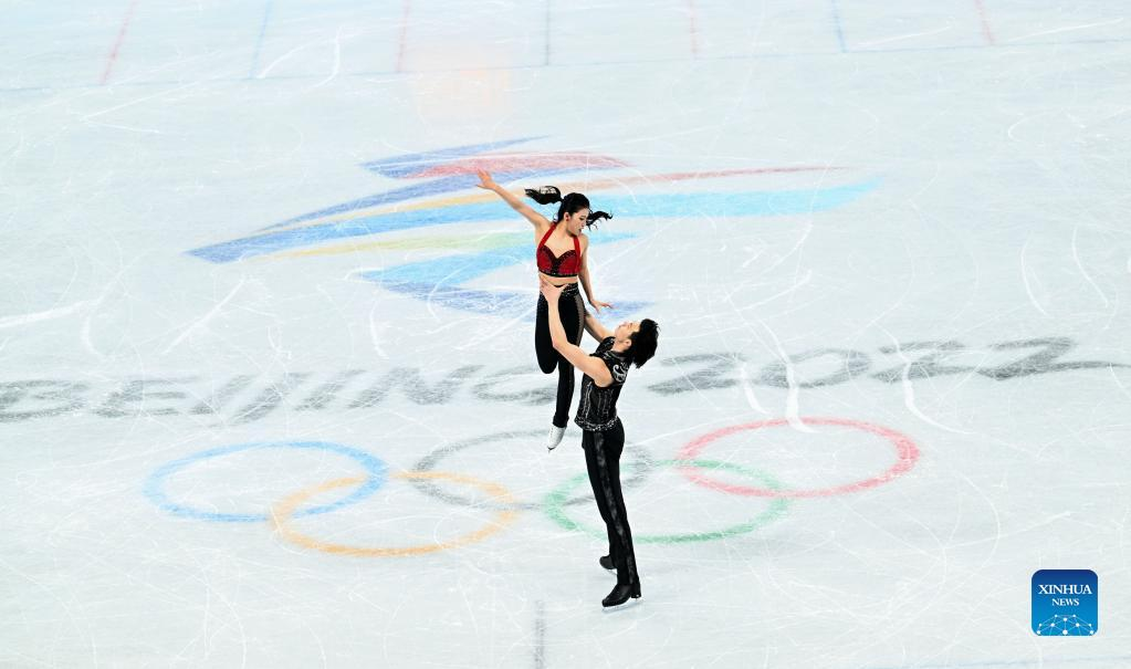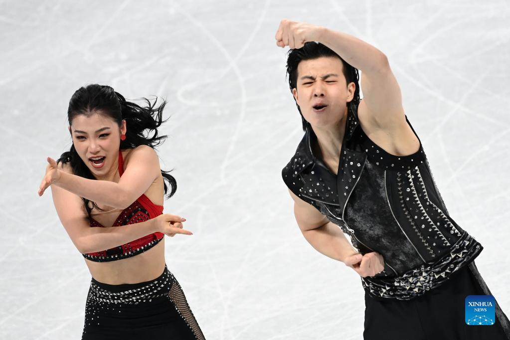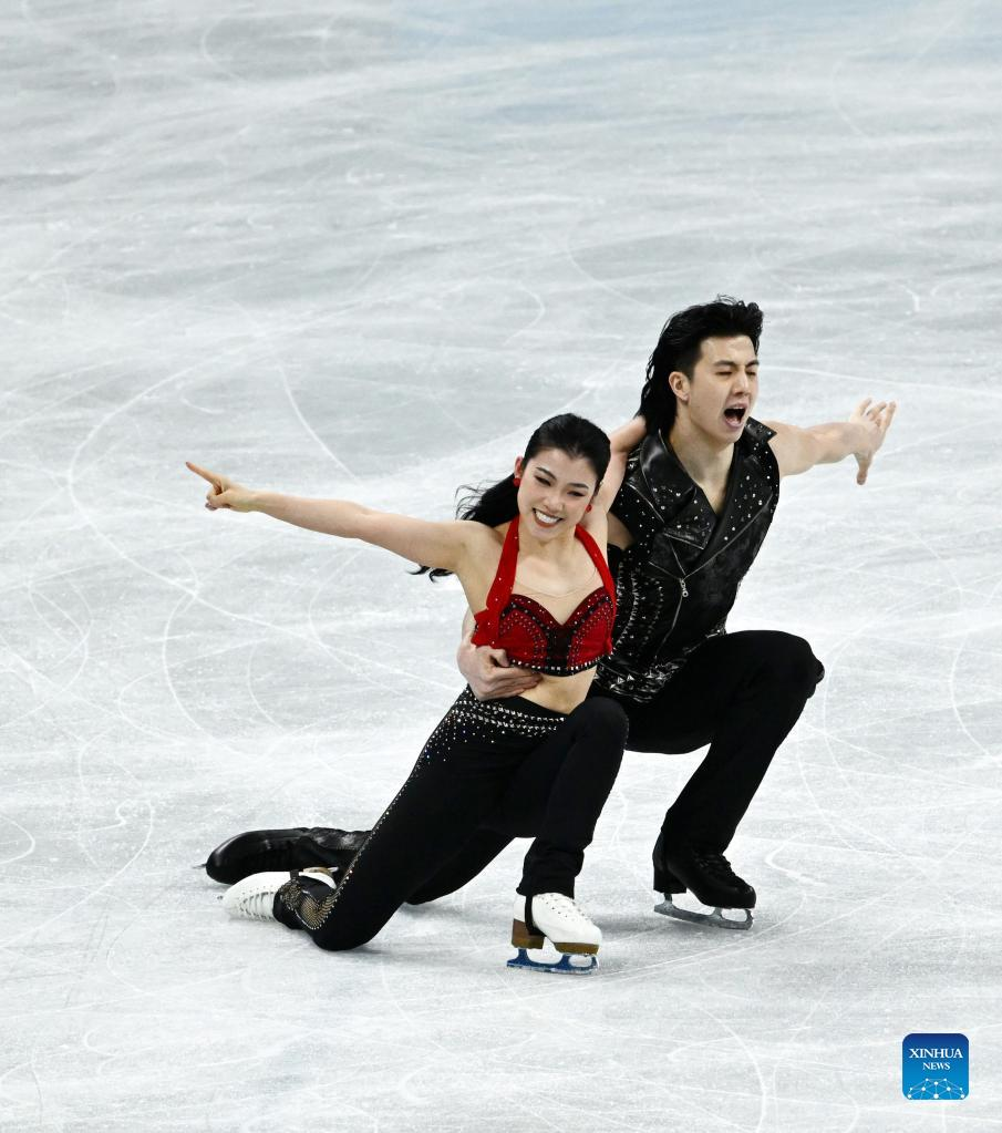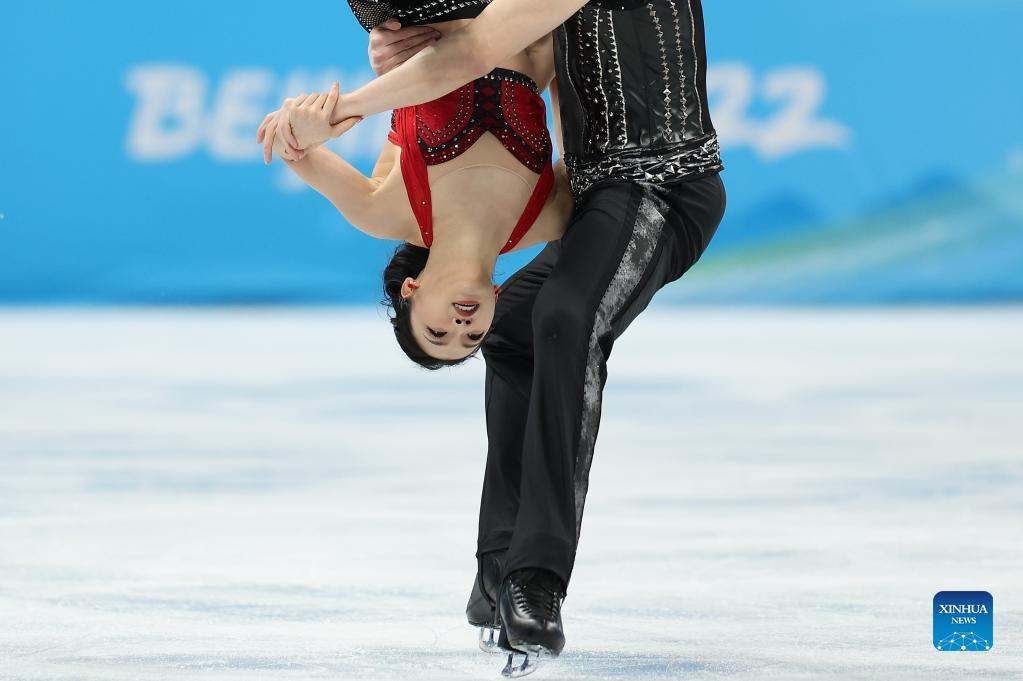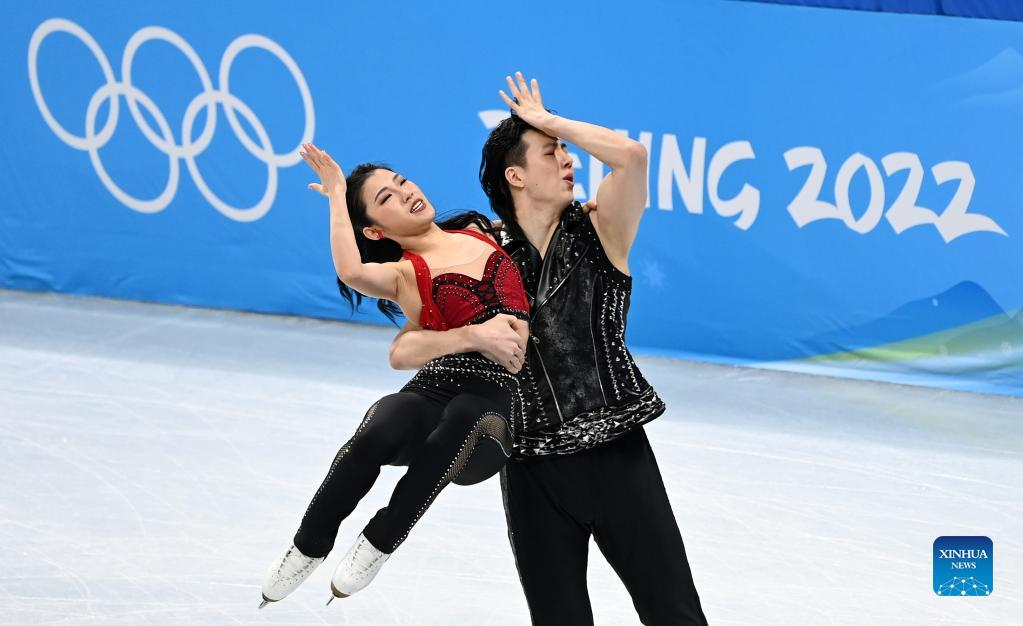 Wang Shiyue (R) /Liu Xinyu of China perform during the figure skating team event ice dance rhythm dance at Capital Indoor Stadium in Beijing, capital of China, Feb. 4, 2022. (Xinhua/Cao Can)