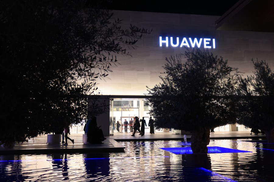 Photo taken on Feb. 2, 2022 shows the outside view of Chinese tech giant Huawei's largest overseas store on its opening day in Riyadh, Saudi Arabia. (Xinhua/Wang Haizhou)