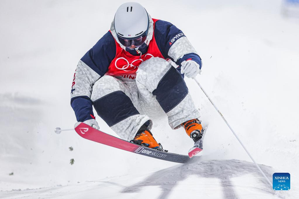 United States' Nick Page competes in the men's moguls qualification during the Beijing 2022 Winter Olympic Games at the Genting Snow Park in Zhangjiakou, north China's Hebei Province, Feb. 3, 2022. (Xinhua/Hu Huhu)
