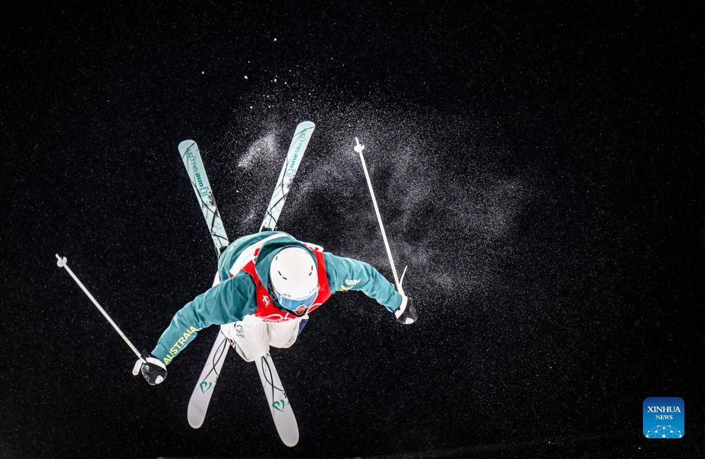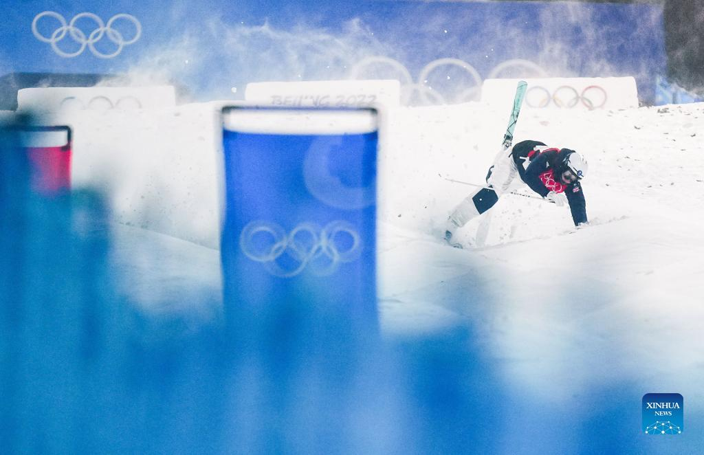 Britteny Cox of Australia competes in the freestyle skiing women's moguls qualification during the Beijing 2022 Winter Olympic Games at the Genting Snow Park in Zhangjiakou, north China's Hebei Province, Feb.3, 2022. (Xinhua/Hu Huhu)