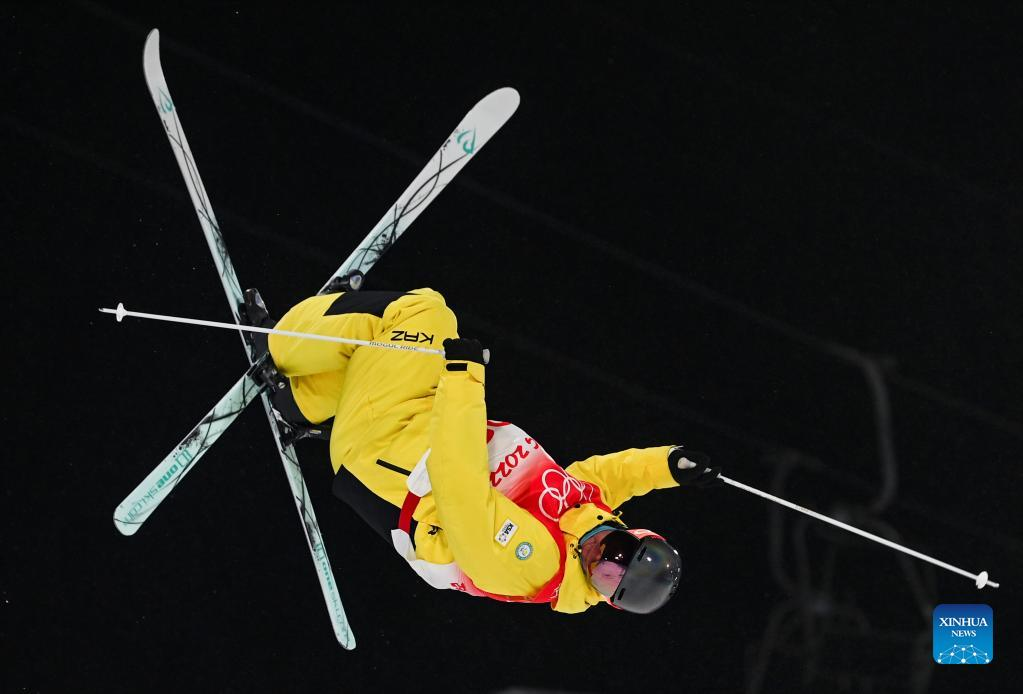 Ayaulym Amrenova of Kazakhstan competes in the freestyle skiing women's moguls qualification during the Beijing 2022 Winter Olympic Games at the Genting Snow Park in Zhangjiakou, north China's Hebei Province, Feb.3, 2022. (Xinhua/Hu Huhu)